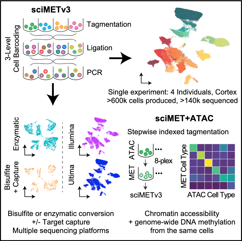 8/30/24– SciMETv3 Preprint Released in BioRxiv: Atlas-scale Single-cell DNA methylation profiling with SciMETv3